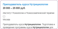средний заработок нутрициолога даже при частичной занятости
